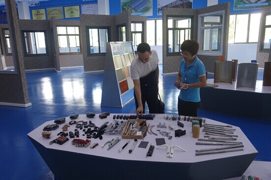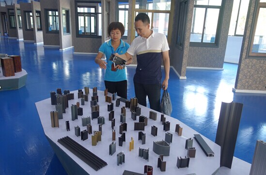 (總監在全國最大的門窗體驗中心向貴賓介紹我司優質配套配件)
