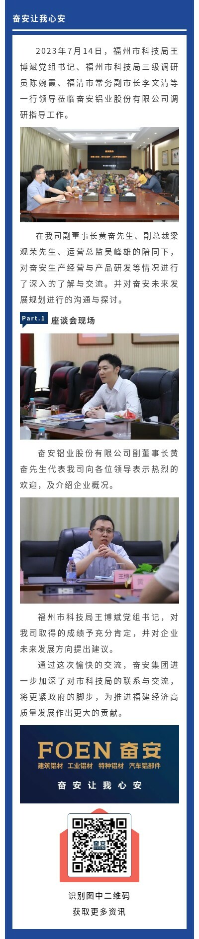 【奮安鋁業動態】福州市科技局領導蒞臨指導