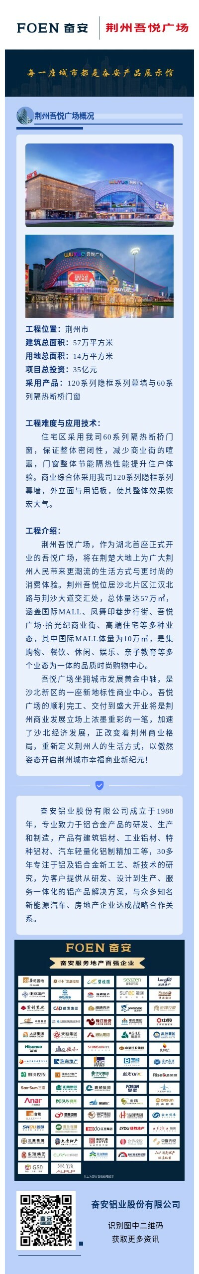 【工程項目案例】荊州吾悅廣場采用奮安鋁材