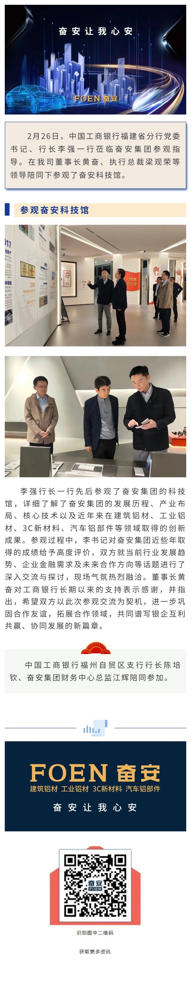 中國工商銀行福建省分行黨委書記、行長一行蒞臨奮安集團參觀指導