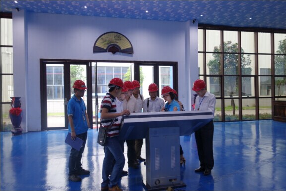 各位教授、老師仔細考察奮安型材生產(chǎn)的每道工序。目前我司擁有數(shù)十臺先進的擠壓設(shè)備,同時擁有多條高效能、高品質(zhì)的立式噴涂線和立式木紋噴涂線、立式氧化電泳線、自動包裝線、自動輸送線等先進的生產(chǎn)設(shè)備;此外,還擁有全亞洲第一條月產(chǎn)量5000T全自動立式氧化電泳線,設(shè)備先進、品質(zhì)卓越。