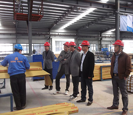 貴賓仔細考察我司型材生產的每個車間、每道工序,其中特別注重對隔熱型材的考察。我司型材加工成的門窗和幕墻產品具有良好的氣密性、防水性和隔音、節能等效果。