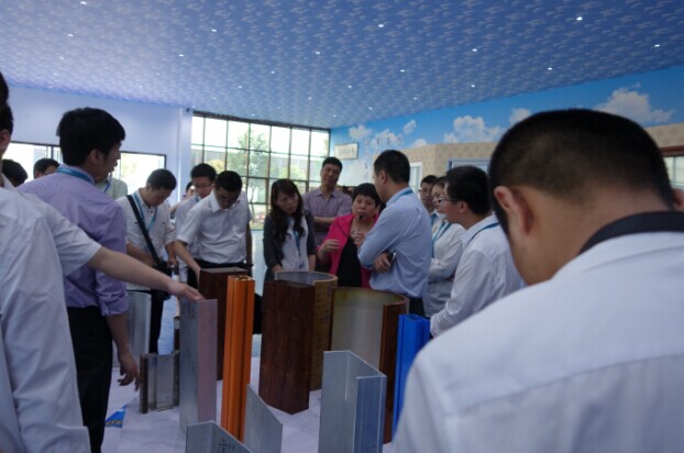 貴賓參觀奮安全國最大門窗體驗中心,總經(jīng)理黃秀華女士詳細地向各位貴賓介紹奮安新窗型、新系統(tǒng)窗、新表面處理,如:仿古代的古鎮(zhèn)門窗、仿古欄桿、歐式系統(tǒng)門窗、現(xiàn)代窗、酒店專用窗,以及超細粉噴涂、4D木紋、電噴表面、特色鋁單板、鋁模板等一系列新表面、新產(chǎn)品。